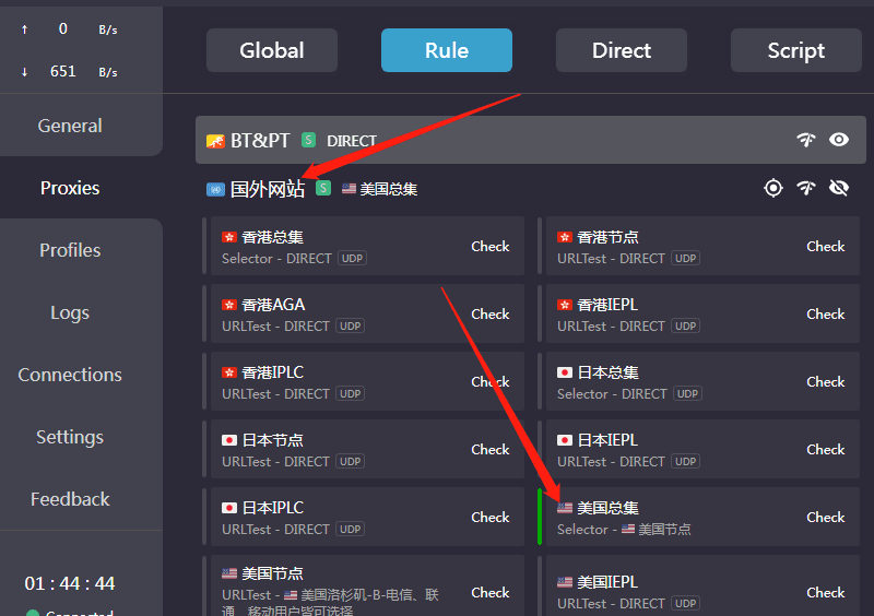 找到国外网站这个栏目,点击美国总集,或者狮城总集(这是一个访问国外网站的开关,代表用美国还是狮城的IP,注意无论你选美国总集还是狮城总集,只要你后面不点另外一个,IP是不会有大变动的)
